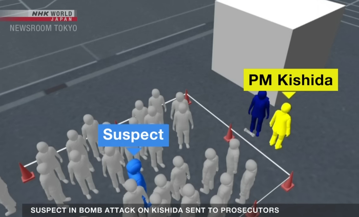 (刺客手持炸弹距离岸田文雄最近时只有10米,来源:NHK)