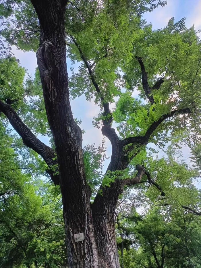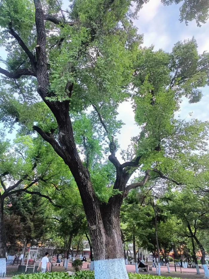 “我从小在公园附近长大,小时候经常和小伙伴到公园里玩,那时候公园里的树很多,当时这课大树就很茂盛,但那时候不知道这是古树。”市民晓琳20多年后来逛公园,看到这株大树依旧茂盛,儿时的回忆一下子都涌了上来,“一看铭牌上标示树龄二百多岁了,顿时有一种失敬的感觉”。