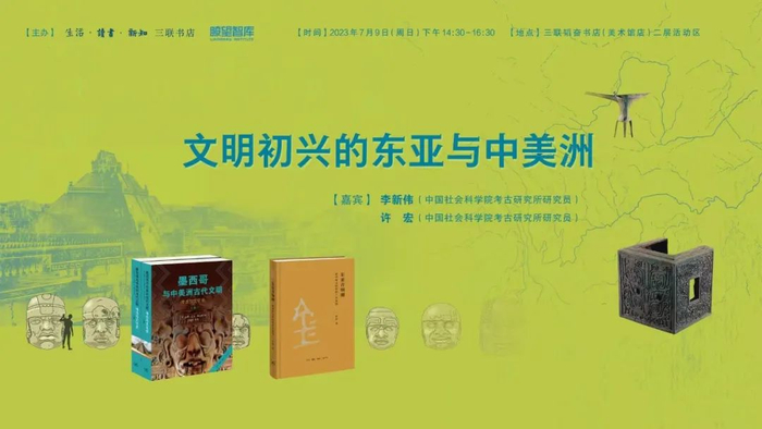 本周日(7月9日)下午2点半,我们将携手三联书店,邀请李新伟与考古学家许宏,共谈“文明初兴的东亚与中美洲”,领略全球文明史诞生和发展的共性和特性,活动海报详见文末,欢迎点击下方按钮预约直播。