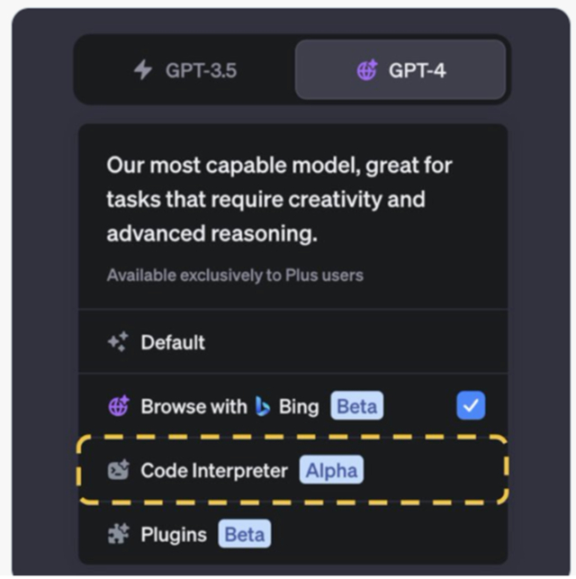 想使用该功能非常简单,用户只需要在自己的ChatGPT plush账户上启用 Code Interpreter即可。以下是ChatGPT代码解析器的常见用例。