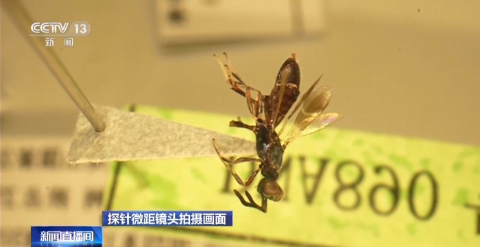 据福建农林大学植物保护学院副教授彭凌飞介绍,最近在这一带频繁捕获的昆虫叫寄生蜂。寄生蜂的身体有闪亮金属光泽,翅膀呈现透明或者半透明。它是生态系统中非常重要的一环,是自然界中重要的天敌昆虫,可以寄生在其他昆虫,特别是一些害虫身上,以害虫为食,最终导致害虫死亡。通过本底调查,可以摸清楚这个区域有哪些天敌昆虫以及它们的寄主是谁。今后,一旦某个害虫爆发,可以进行有效应对,尽量避免使用化学农药来防治,也就是“以虫治虫”。