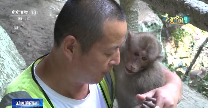 本来只是负责景区设施的日常维护,为了让人猴和平共处,马师傅就主动承担了猴群的日常保护和监测工作,当起了猴群“奶爸”。