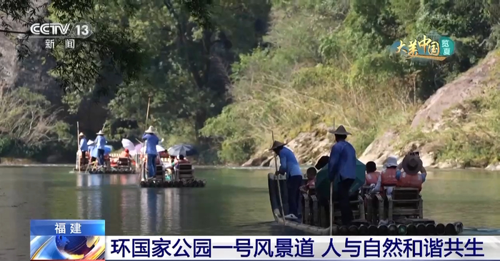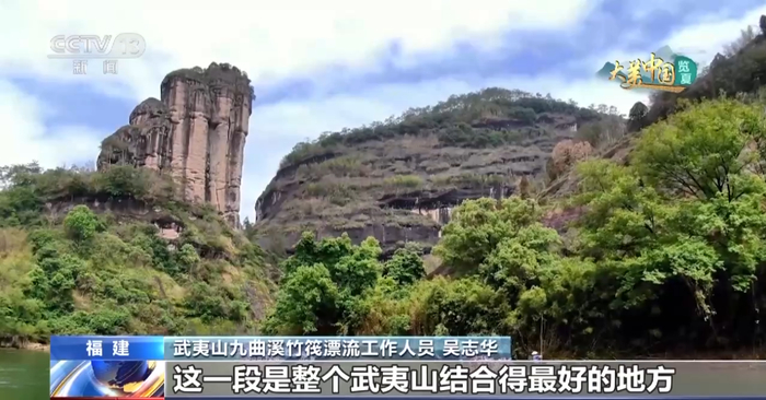 总台记者 李天雨:泛舟游于九曲溪之上,尽览武夷山水好风光。作为环带风景道的一部分,竹筏漂流成为游客们来到这里观光的首选,大家仰望雄伟的山峰,俯瞰清澈的溪水,可以说每一曲有每一曲的独特之处。