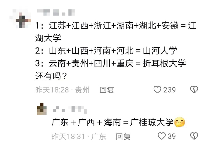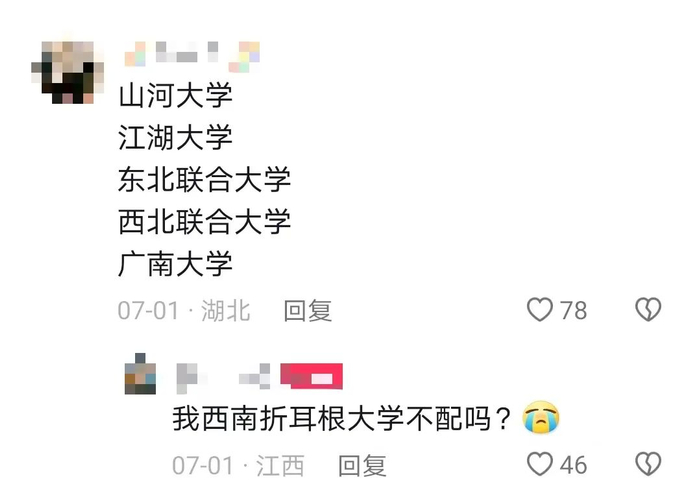 随着“山河大学”的呼声愈加高涨,各式各样的虚拟大学也被创造出来:西南折耳根大学、江湖大学、广南大学……