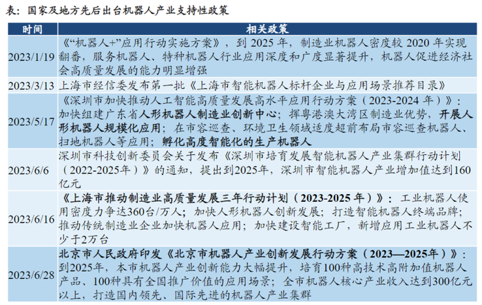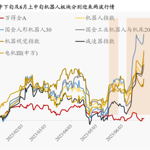 伴随世界人工智能大会掀起热潮,二级市场方面也积极反应,东吴证券陈刚等人在7月3日发布的研报中表示,5月中旬与6月中旬机器人板块迎来两波行情,相关催化事件分别包括英伟达、特斯拉相关发言及《上海市推动制造业高质量发展三年行动计划(2023-2025 年)》发布等。