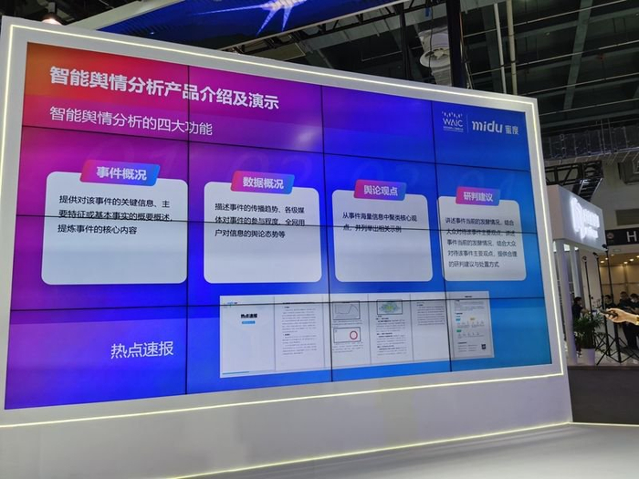 人工智能大语言模型给很多行业领域带来了变革,在新闻舆情分析领域,大模型也大有用武之地。今天,上海企业蜜度在2023世界人工智能大会上发布了“蜜巢”智能舆情分析大语言模型。输入关键词后,它能在2分钟左右自动生成相关新闻的《热点速报》,包含事件概况、数据概况、舆论观点、研判建议4个板块,有望成为政府和相关企事业单位的得力助手。