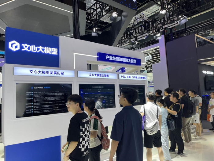 财联社记者注意到,运营商、互联网大厂、AI独角兽的展台被围得“水泄不通”,不少观众前来了解、体验近期热度较高的中国移动“九天”人工智能行业大模型、百度文心一言、腾讯云行业大模型、阿里通义千问大模型等。
