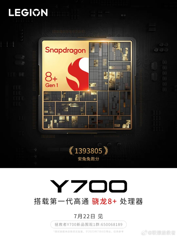 看到iPhone15Pro系列爆料的蓝色,想起之前iPhone12Pro系列推出的海蓝色,两者还挺接近的,不过15Pro系列的蓝色可能更低调一点,不知道大家会给新的深蓝色打几分?最后是大家期待已久的小尺寸电竞平板,今天官方预热了新的配置。 如上图所见,新款拯救者Y700预热采用8英寸小尺寸机身(预计为8.8英寸屏幕),部分用户可以实现单手握持,同时搭载骁龙8+ Gen1处理器,将于7月22日发布。 作为补充,截至目前市面上搭载骁龙8+的平板电脑比较少,应该就小米平板6 Pro和前两天刚发的红魔电竞平板,一个11英寸,一个12.1英寸,而拯救者是8.8英寸,可以说三款8+平板定位均不同。(*中兴AxonPad虽也搭载骁龙8+,但主要面向政企,未看到零售版)