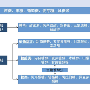 近年以来,无糖化、低糖化正逐渐成为健康饮食新标准,推动着上游非糖甜味剂市场的增长。根据国信证券6月30日研报显示,当前市场上的甜味剂主要为天然甜味剂和人工合成甜味剂,包括阿斯巴甜、甜菊糖苷、罗汉果甜苷、赤藓糖醇、甜蜜素、三氯蔗糖等多个种类。