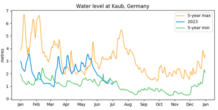 据德国联邦本周发布的数据显示,法兰克福以西的关键航路点Kaub的航标已经处于至少30年来的最低水平。