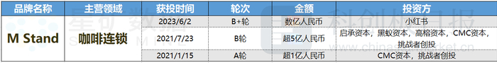 此外,6月还有两大饮品品牌获投分别为茶百道和M Stand,两大品牌均为全国连锁品牌,且曾在新消费融资热潮期间备受关注。其融资消息及金额之大,引得行业热议。