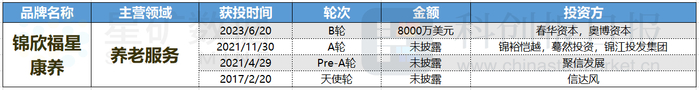 同时,本月有3起养老服务公司获投,且均为一站式养老平台,可提供医疗、居家、社区养老服务。其中锦欣福星康养探索“医疗与养老结合”,偶爸则主营线上养老咨询服务平台,比利信息关注健康养老及旅游行业。