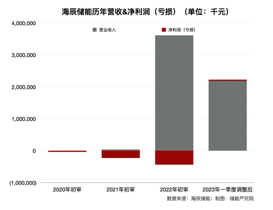 ‘储能严究院’获得的海辰储能近三年财务报表显示,该公司2019年12月成立至今的营收总额累计58.45亿元,累计净亏损6.67亿元。