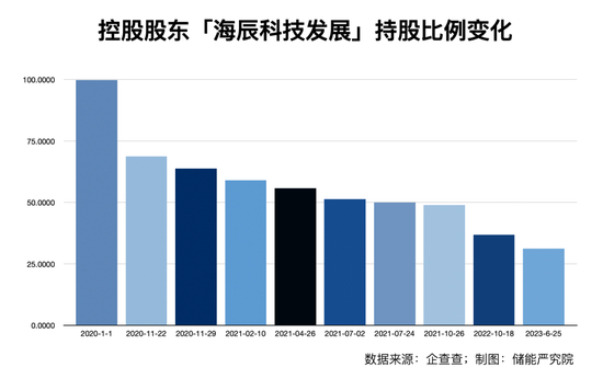 在海辰储能滚雪球式融资中,海辰科技发展始终稳居大股东地位,不过由于多轮融资,其持股比例从100%逐渐稀释到了31.1667%。