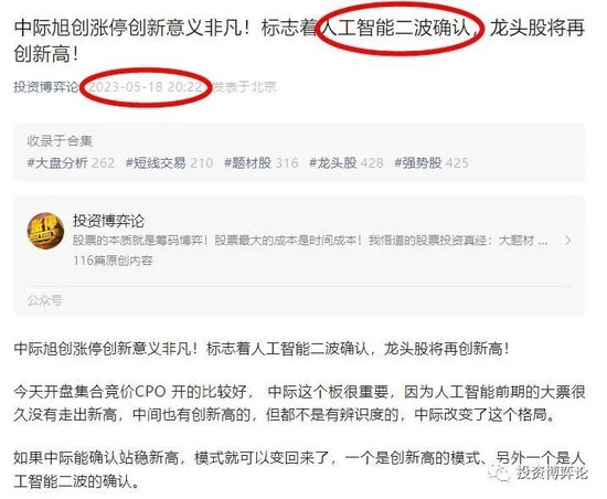 5月18文章主要观点:中际旭创涨停创新高意义非凡!标志着人工智能二波确认,龙头股将再创新高!从昨天AI杀跌结束,空头衰竭,今天的反弹就是对空头衰竭的确认,市场有可能开始尝试启动新的赚钱效应,市场开始具备新一轮行情的条件!