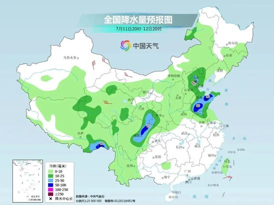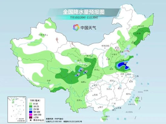 中央气象台预计,7月11日至14日,四川盆地、江汉、西北地区东部、华北、东北地区、黄淮、江淮等地有中到大雨,部分地区有暴雨,局地大暴雨,上述部分地区并伴有强对流天气。