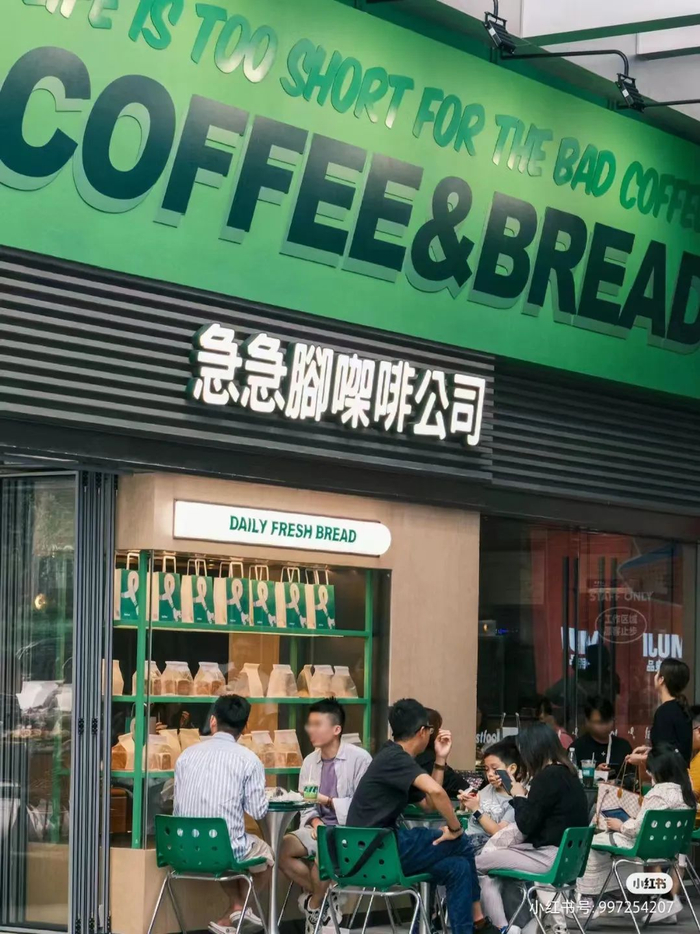 成立于2019年的fastfoot急急脚(“急急脚”是粤语口头禅,意味着急着去做某事),因“巧妙搭配西式咖啡与广式糖水”出圈,标志性的荧光绿配色门店、IP吖叔,辨识度极高。经过近3年发展,已成为融合广东粤式文化和美式复古风格的创意咖啡生活品牌,提供创意饮品空间、联乘企划、艺术活动等内容,进驻广州、深圳、佛山。