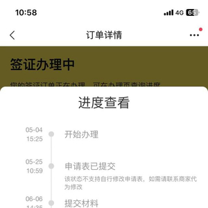△盛女士的申请进度显示,6月26日商家方才送签。