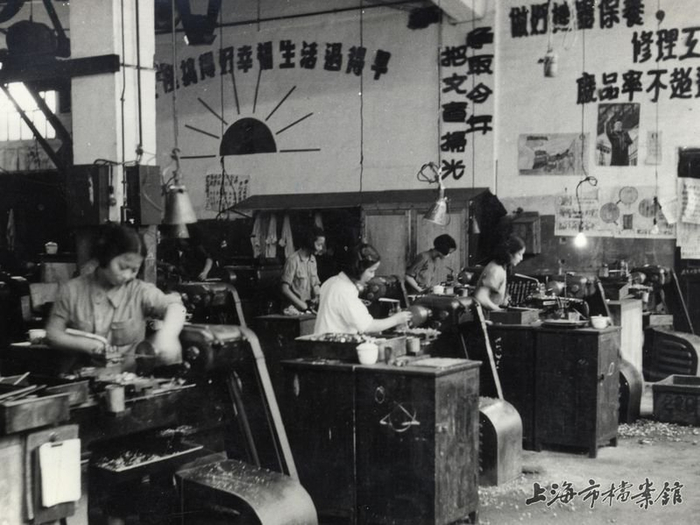 1952年,中国纺织机器厂的青年女工在车间内操作机床
