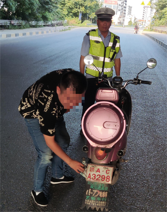 为进一步增强电动自行车驾驶人的交通安全意识,切实筑牢交通安全防线,营造安全、文明、畅通、有序的道路交通环境,南昌交警以平安护夏为落脚点,持续开展电动自行车不文明交通行为治理行动,依法查处了多起故意遮挡电动自行车号牌的违法行为。