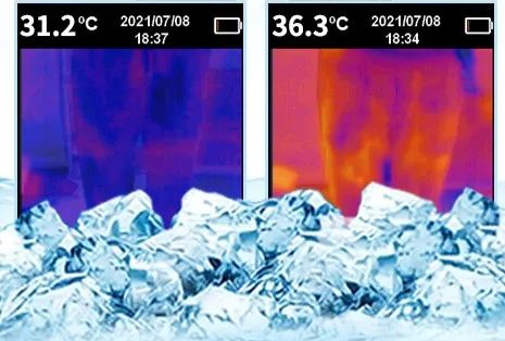 用红外测温对比发现,穿普通裤子温度显示36.3℃,而穿上冰丝空调裤温度瞬间降到了31.2℃。