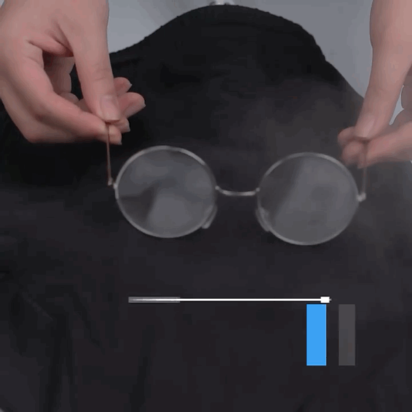 看把这款裤子放在加湿器上,水雾嘟嘟往外冒,眼镜片都“起雾”了呢。