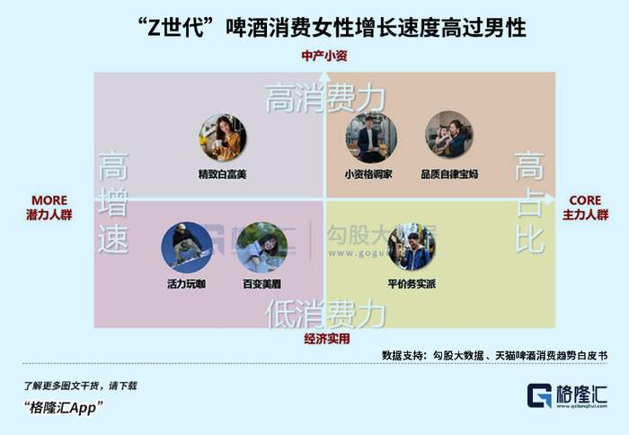 2022年《天猫啤酒趋势白皮书》显示,目前“Z世代”为啤酒消费增长速度最快的人群,女性同比增速高过男性。