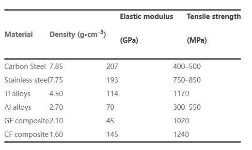 尽管存在一系列材料选择,但综合考虑机械性能和耐用性及复杂形状的易制造性,绝大多数开发人员选择纤维复合材料,其中大部分采用碳纤维增强材料以提高抗疲劳性。