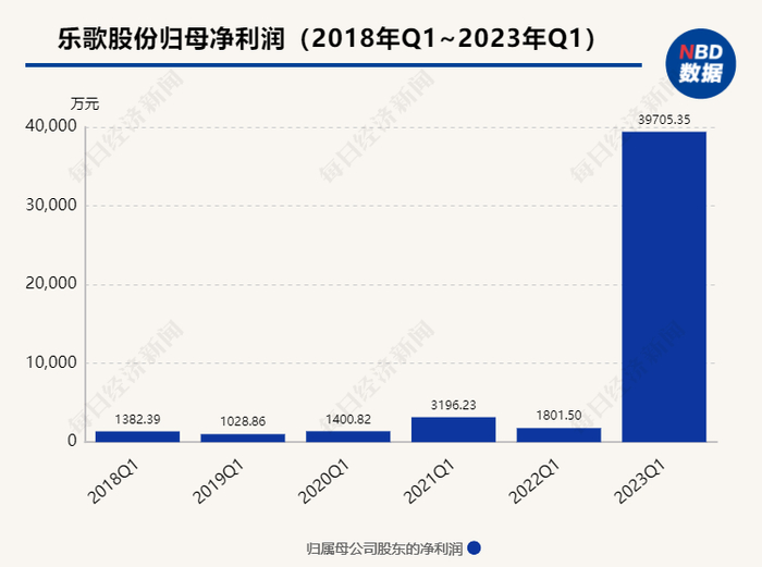 2023一季度,乐歌股份营收7.96亿元,同比增4.29%,归母净利润3.97亿元,同比增2081.97%,扣非后净利润2063.67万元,同比增851.99%。