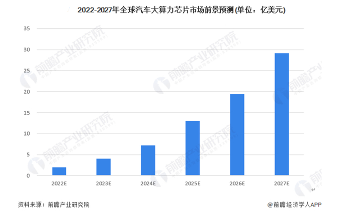 据前瞻产业研究院,随着智能汽车、自动驾驶技术在全球范围内的逐渐落地,L3级别以上自动驾驶汽车需求将快速上升,IDC预测未来3年L3级别以上自动驾驶汽车全球出货量年化增长率将超过100%,到2024年后,L3级别以上自动驾驶汽车全球出货量将超80万辆。同时自动驾驶汽车的发展也将快速推动全球大算力芯片市场规模的增长。