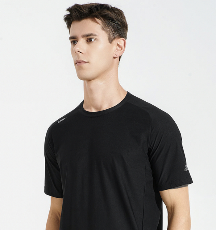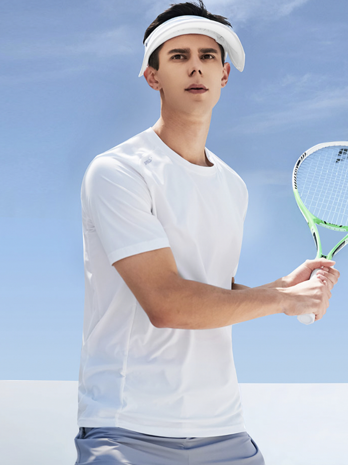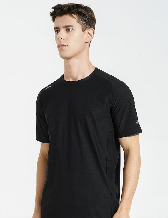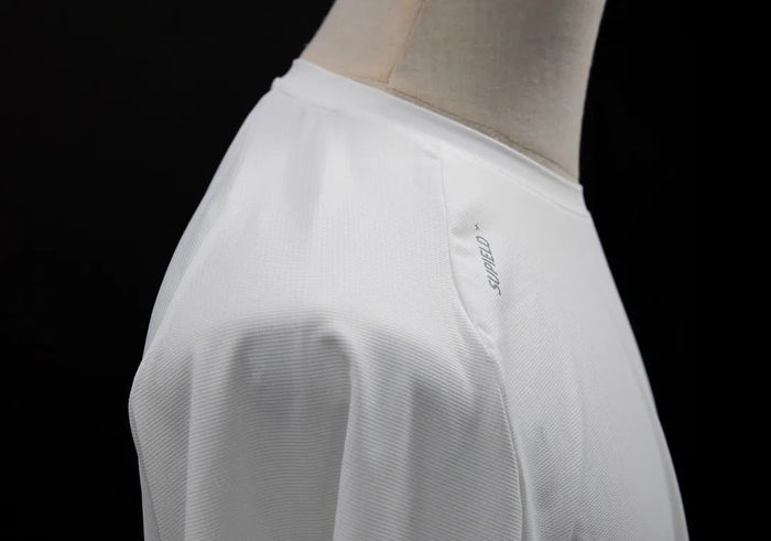 素湃玉石凉感短袖T恤在面料纤维中添加了寒水石凉感粒子,令其与衣料纱线融为一体。
