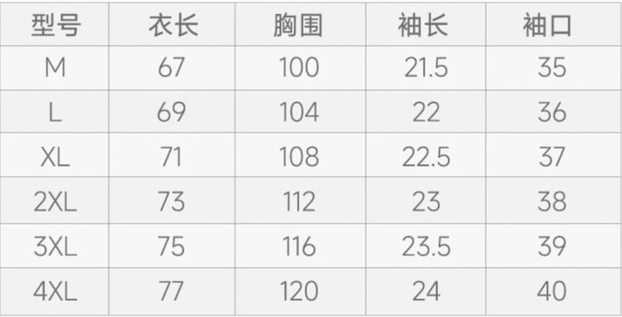 素湃T恤的尺码也全:从M到4XL,每个尺码都细心标注了不同部位的尺寸细节。
