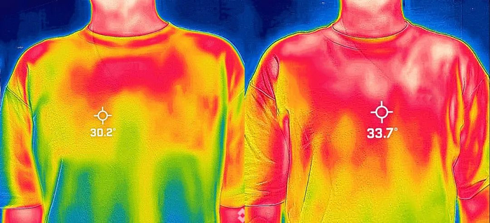 可以看到经过15秒运动后,身穿普通棉T体温升高3.5度。