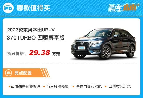 所以综合来看,2023款东风本田UR-V的370TURBO 四驱尊享版在配置和售价方面优势明显,在购买时可优先考虑。