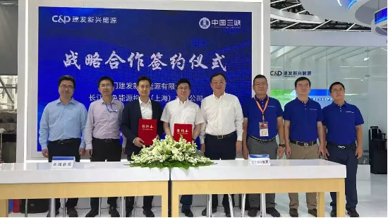 展会期间,建发新兴能源与长江绿色能源投资(上海)有限公司(下称“长绿能投”)签署战略合作协议,长江绿色发展私募基金管理有限公司总经理何百磊,建发股份党委书记、董事长郑永达,建发股份副总经理许加纳等双方领导出席本次签约仪式。