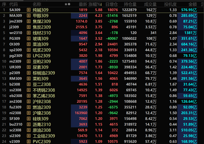 美元的杀跌往往首先对应着商品价格的回升。今天早盘,期货市场亦是一片火红。这其中,纯碱和玻璃的大涨又与中国的房地产政策有关。
