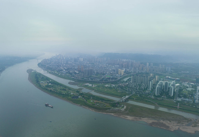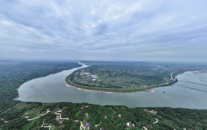 ↑长江竹岛位于长江之中,形似竹叶,与江安县城隔江相望。