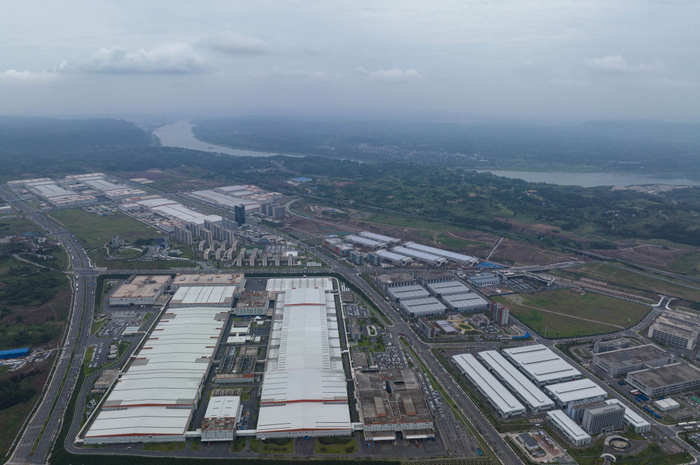 ↑这是宜宾市三江新区东部产业园的四川时代新能源科技有限公司动力电池生产基地。