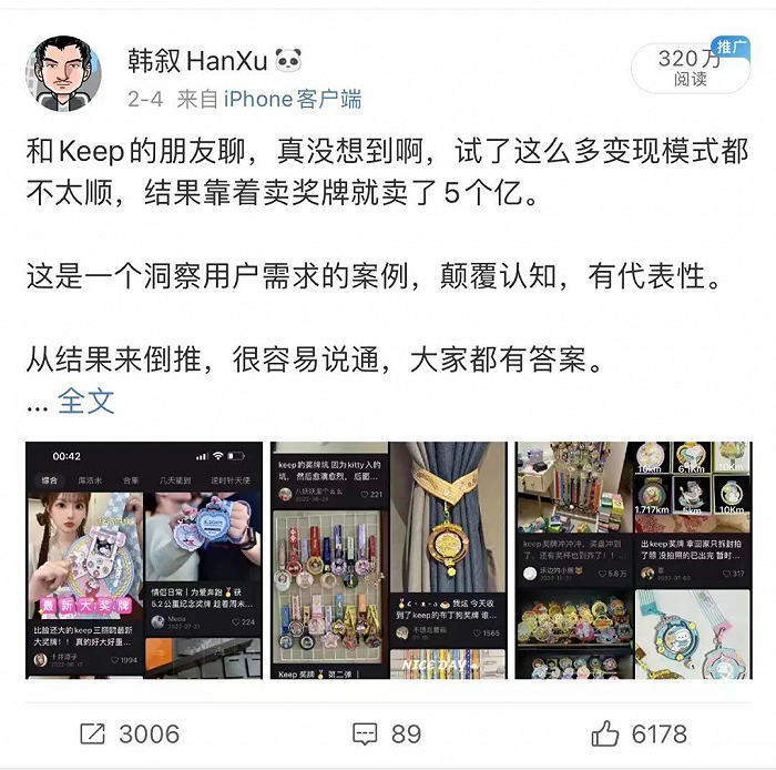KEEP的通过设置不同的跑步公里数、时间限制、奖牌设计等方式,让消费者产生一种挑战和期待的心理,从而激发他们参与跑步活动,并且在完成后获得一种成就感和快乐感。同时,KEEP还会通过定期更新、限量发售、新品推荐等方式,制造出新鲜感和稀缺感,让消费者觉得错过了就没有机会了,从而激发他们购买奖牌的欲望。
