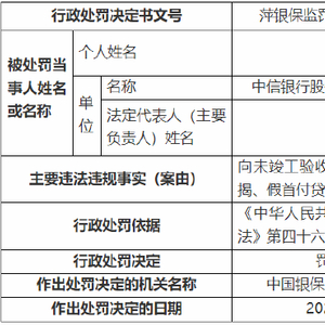 向未竣工验收的商业用房发放假按揭、假首付贷款 中信银行萍乡分行被罚50万元