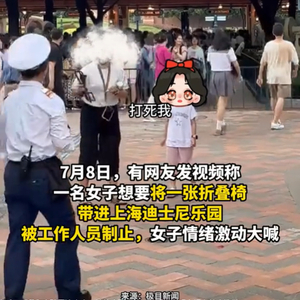 近日,一则视频引发网友热议,视频中一女子想要将一张折叠椅带进上海迪士尼乐园,被工作人员制止,女子情绪激动地大喊“打死我,我们家孩子这么小,她等会要坐的”。上海迪士尼乐园相关工作人员对此表示,园区有明文规定,禁止携带折叠椅入内,“携带折叠椅可能会影响到其他游客”。