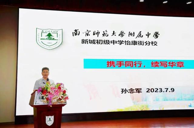 南师附中新城初中怡康街分校校长孙念军以“携手同行,续写华章”为主题,真诚分享大家最关心的、最想知道的内容。