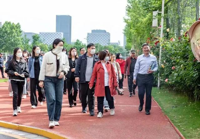 最近一次家长开放日上,校长孙念军带着家长们漫步在生机盎然的校园。