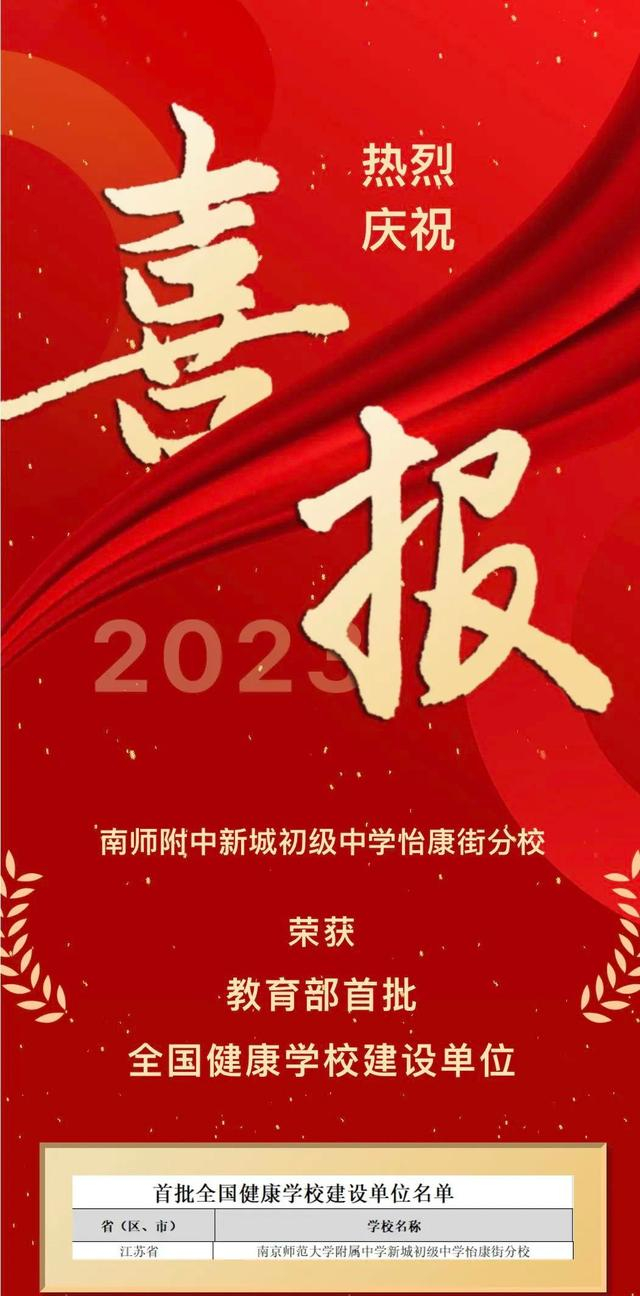 就在前不久,南师附中新城初级中学怡康街分校荣获教育部首批全国健康学校建设单位,成为南京唯一一所上榜的初中!