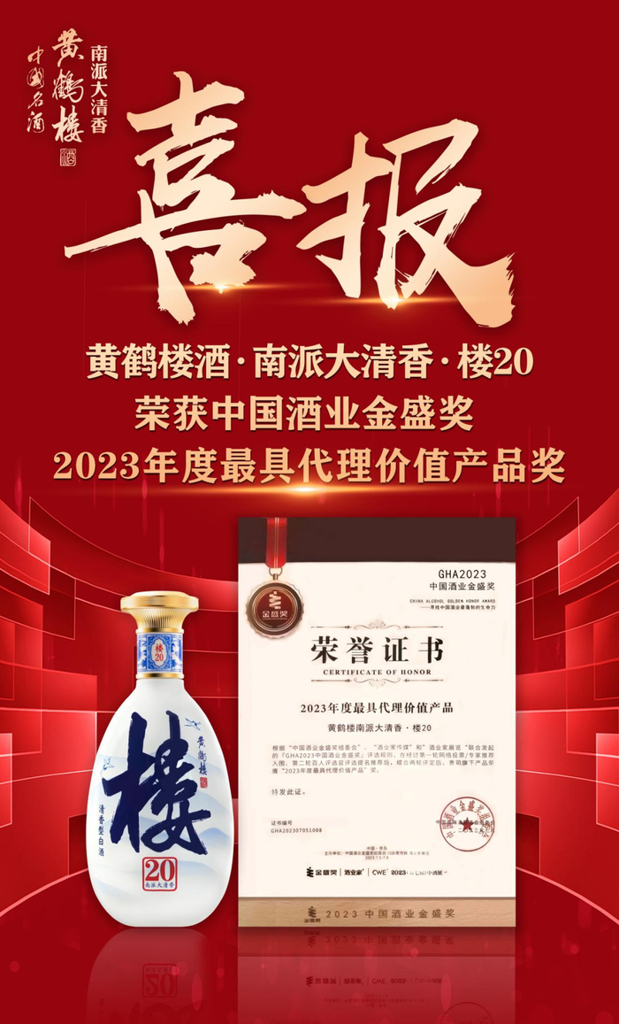楼20斩获“最具代理价值产品”,黄鹤楼以“南派”之名重塑清香名酒价值