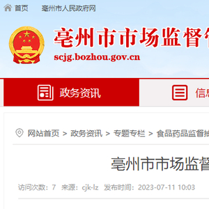 安徽省亳州市市场监督管理局公布2023年第26期食品安全抽检信息