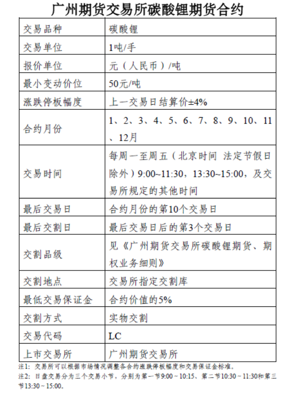 7月11日,据广期所消息,《广州期货交易所碳酸锂期货合约》《广州期货交易所碳酸锂期权合约》《广州期货交易所碳酸锂期货、期权业务细则》,已由广州期货交易所董事会审议通过,并报告中国证监会,现予以发布,自发布之日起实施。碳酸锂期货和碳酸锂期权合约上市交易时间及有关事项另行通知。