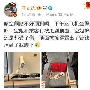 科普博主、中国地质大学(北京)副教授邢立达称,自己也是此次航班的乘客之一,“空姐和乘客被甩到了顶面”。