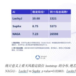相比其他麻将AI和人类玩家,“绝艺 LuckyJ”不仅稳定段位更高,从零开始达到十段所需的对战局数也明显更少,仅需要 1321 局。这体现了腾讯 AI Lab 在决策AI方向上世界领先的技术实力。