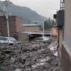 11日上午,红星新闻记者从当地村民发布的视频中看到,10日晚上,天空下着大雨,浑浊的水流从村庄房屋前后穿过。在11日早上拍摄的视频中,雨停了,村庄的道路上堆积着泥石流,有车辆被泥石流掩埋了部分车身。此外,在村庄外,大量的泥石流冲进了地里,在一处疑似为沙料场的场地,有货车侧翻在地,也有货车被泥石流掩埋部分车身。